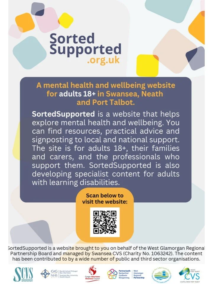 Click on this link: SortedSupported.org.uk, for a very useful website providing mental health and wellbeing information for adults 18+ living in Swansea Neath and Port Talbot.